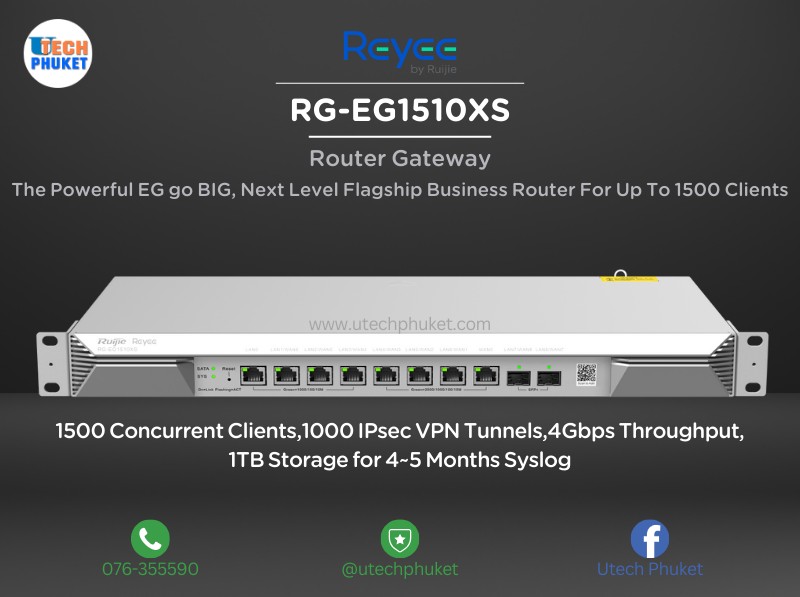 รายละเอียดสินค้า RG-EG1510XS: The Powerful EG go BIG, Next Level Flagship Business Router For Up To 1500 Clients บริษัท ยูเทค ภูเก็ต จำกัด เราจำหน่าย และ ให้บริการ ติดตั้ง ระบบกล้องวงจรปิด CCTV , ตู้สาขาโทรศัพท์ PABX ระบบไวไฟอินเตอร์เน็ต , Hotel Lock , Door Lock ระบบตัดไฟในห้องพัก ECS BOX , ไฟฉุกเฉิน Emergency Light ระบบเปิด ปิด ประตูห้องพัก คอนโด อพาร์ทเม้น AccessControl ระบบไม้กระดก Carpark System โปรแกรมบริหารงานบุคคล เครื่องสแกนลายนิ้วมือ AccPayRoll เครื่องทำลายเอกสาร เครื่องนับธนบัตร เครื่องเคลือบบัตร อุปกรณ์ POS ลิ้นชัก ปริ้นเตอร์ เครื่องทำบาร์ โค้ด กระดาษแคชเชียร์ สติกเกอร์บาร์โค้ด หมึกพิมพ์ปริ้นเตอร์ หมึกเครื่องตอกบัตร หมึกอุปกรณ์สำนักงานทุกชนิด ที่ท่านหาซื้อที่ไหนไม่ได้อีกแล้ว เราพร้อมบริการในเขตภูเก็ต และพื้นที่จังหวัดใกล้เคียง รับปรึกษาพร้อมวางระบบ ให้คำแนะนำโดยไม่มีค่าใช้จ่าย ใดๆ ทั้งนี้เรายังรับวางระบบอุปกรณ์รักษาความปลอดภัย ให้แก่องค์กร บริษัท ห้างร้าน ด้วยผู้ชำนาญงานมีประสบการณ์มากกว่า 10 ปี Website : https://utechphuket.com/th Facebook : https://www.facebook.com/utechphuketall/ LINE : @utechphuket